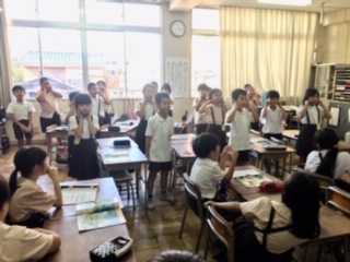 美しい声を意識して、「うさぎ」を練習しました。互いに見て、聞いて、良いところを見つけ合いました。