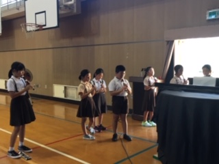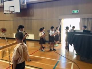 たそがれコンサートに出場した子ども達が、7日の敬老の日の集いにも歌や合奏を披露します。今日からまた練習がスタートしました。