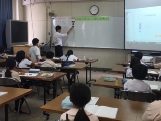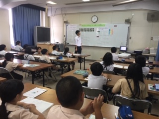 「大きい数のしくみ」の単元で、Y先生が研究授業をしました。「ある数を10倍するとどんな数になるか」、図や式で表して考えました。子ども達は、自分の考えをノートに書いたり発表したりしました。10倍すると、位が一つ上がること、0が一つつくことなどが分かりました。