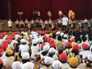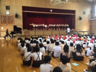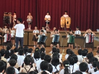 「かっこよかった!」「とても楽しい気持ちになった」「上手だなと思った」などの感想がありました。蒸し暑い体育館に、今朝は音楽のさわやかな風が吹き渡りました。