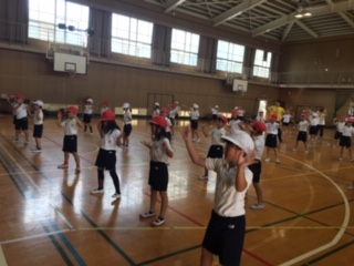 運動会のダンス練習をしていました。最後のウェーブのところがかっこよくきまっています!