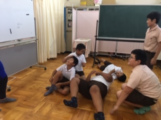 また、救護担当の係は、注意事項を聞いて、手当の仕方なども実際にやってみました。