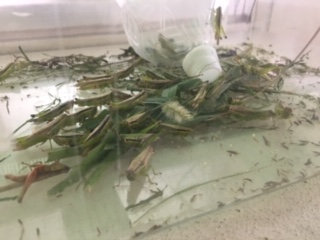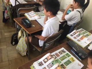 理科支援員のS先生が、カマキリとイナゴを持ってきてくださいました。バッタは見たことがあっても、イナゴは初めてという子が多いようです。