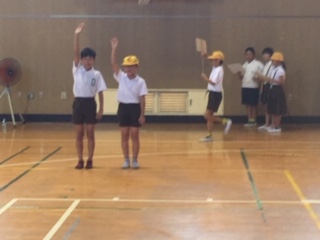 代表委員会のメンバーが、同じ体育館で開会式の練習をしていました。高舞に刺激をし合って、良いものを作り上げようと頑張っています。今年の運動会は、みんな気合が入っています。「きせき」が起きるかな?