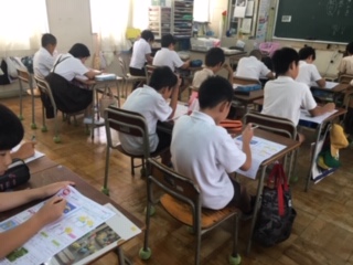 音楽、図工、英語、理科などを学年で担当を決めて教えています。高学年らしくなって落ち着いて学習しています。