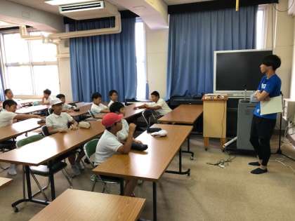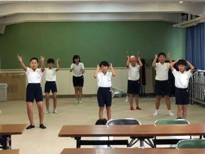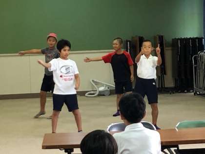 隊形移動の時にリーダーや副リーダーとなる子どもたちが昼休みに多目的室で特訓を重ねています。