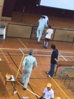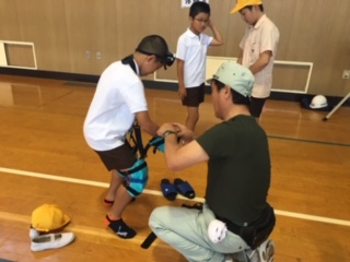 足や腕、アイマスクなどをつけて、体に自由がきかない時の体験「浦島太郎」と車椅子体験を行いました。体が重く感じるのと、視野が狭くなるなどの体験を通して、労りの気持ちも芽生えたのではないかと思います。