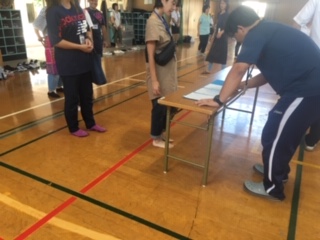 その後保護者への子どもの引き渡しを行いました。たくさんの保護者の方が、メールを見たり、それより前に様子を参観してくださっていて、引き渡しもスムースにできました。