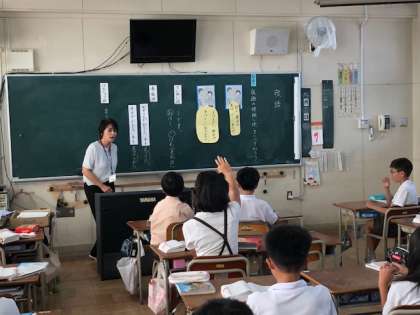 今日は、校長先生による敬語の授業でした。尊敬語や丁寧語以外に、けんじょう語もあることを知り、楽しく敬語について学ぶことができました。
