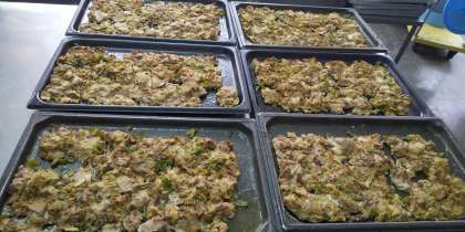 暑い日にも食欲が出るように、カレー味の味付けで焼き物機で蒸し焼きにした豚肉は子どもたちにも人気でした。夏の疲れが出やすい時期です。香辛料も上手に取り入れて3食しっかり食べれるといいですね。