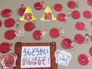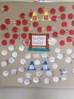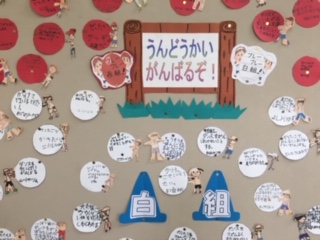 廊下の掲示板にありました。徒競走、ダンスなどにかける一人一人の思いが伝わってきます。