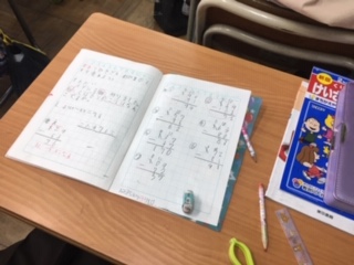繰り下がりが一回ある引き算の筆算を学習しました。筆算は、ノートに書くときに、スペースをとり、縦の列をそろえてきちんと書くと間違いも少なくなります。学校では、下敷きをきちんとしく、定規を使うなどを繰り返し指導しています。