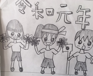 運動会に向けて、プログラムに載せる絵を募集していました。玄関ホールに掲示しています。力作ぞろいです!!