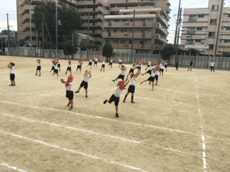 赤、黄、青の、バンダナを巻いて踊ります。最後の練習に気合が入りました。