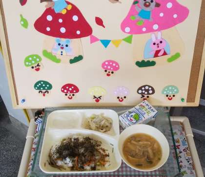 調理員さんが給食室の掲示を秋らしく飾ってくれました。