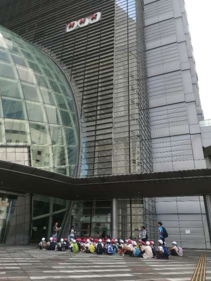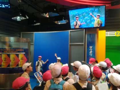 今日は5年生が校外学習に行きました。初めに、NHK大阪放送局を見学しました。ドラマセットの秘密を教えてもらったり、ニュースやお天気のキャスターを体験したりして、子どもたちは学習したことをしっかりメモしていました。