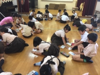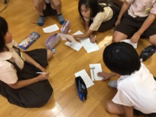 目や耳、身体の不自由な人がいたらどうするか、考え、グループで交流しました。