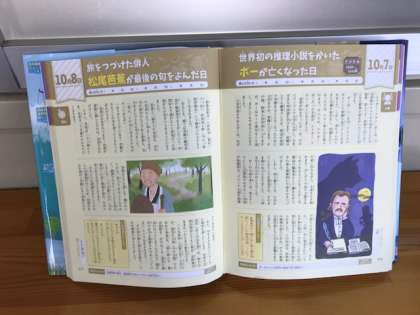 運動会も終わり、「スポーツ・勉強・読書」の秋がやってきました。落ち着いて学習や運動に取り組みましょう。校長室前には「今日は何の日?」の本を置いています。今日は、世界初の推理小説をかいたポーが亡くなった日だそうです。10月の生活目標は、廊下・階段の右側を静かに歩こうです。みんなで、意識して過ごしましょう。