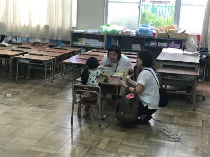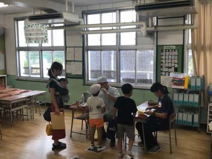 来年度1年生になる子どもと保護者が学校にきて、内科や視力、聴力などの健康診断を行いました。入学まであと半年。みなさんが、大宮小学校へ入学してくるのを楽しみにしています。