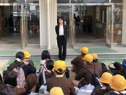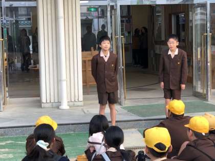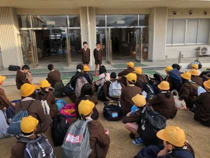 出発式です。児童の司会でスタートしました。天気が心配ですが、2日間楽しい思い出を作ってほしいです。