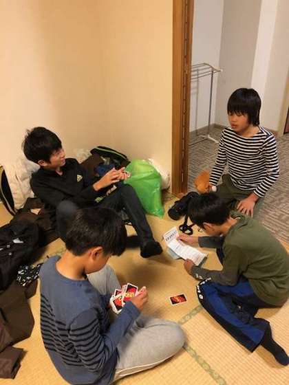 買い物までの時間、部屋で先生から渡されたトランプやカードゲームをして過ごしています。