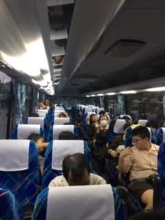 スペイン村までもうすぐです。雨天を好き飛ばすかのような元気な声で校歌と「千林商店街の歌」を歌う6年生です!!