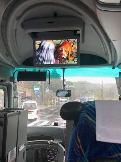 帰りのバスは、暖房をきかせてもらっています。静かにDVDを観たり、目を閉じて休んだりしています。