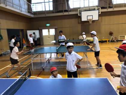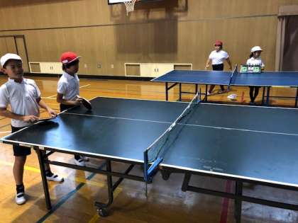 卓球クラブでは、各学年の混合グループに分かれ、めあてを決めてから活動を始めました。