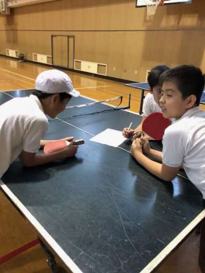 卓球台の数が限られているので、譲り合ったり点数を決めて交代したりしています。