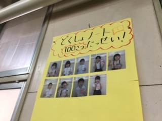 学級や廊下にもたくさんの本があり、子ども達は8時30分になるとさっと席について本を読んでいます。100冊達成した子もたくさんいます。