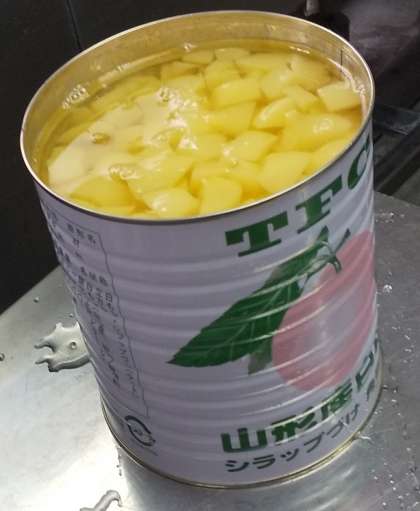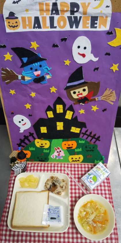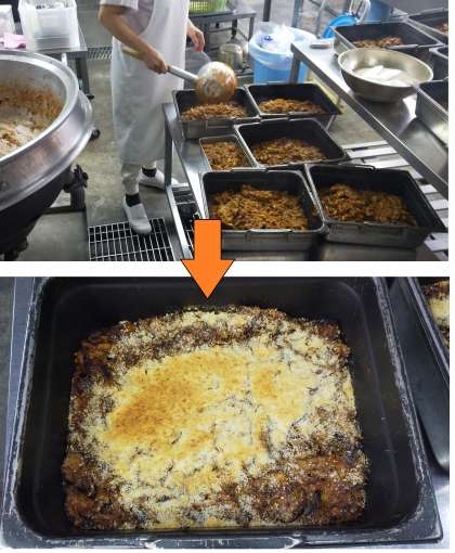 なすは苦手な子もいますが、グラタンだと食べられるという子も多く、人気の献立です。白桃の缶詰は山形県産の桃を使用しています。