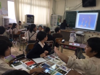 図工科の鑑賞学習を行いました。有名な絵のカードの中から好きなものを選び、イメージしたことや感想などをシートに書いて交流しました。