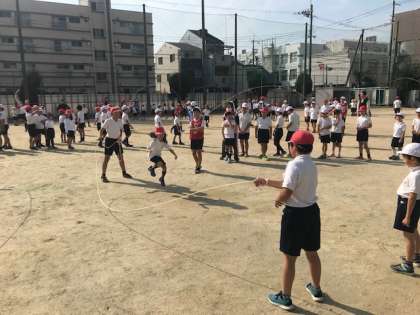 練習を重ねたり、高学年が縄に入るタイミングをやさしく教えてあげたりすることで、練習の時よりも、たくさん跳ぶことができた子どもがたくさんいました。