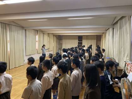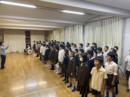 信愛学院の講堂にて5年生は合唱2曲を披露します。