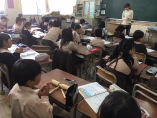 「大きなかぼちゃ」の曲に合わせて、打楽器のリズム打ちをしました。交代で演奏して聴き合っています。