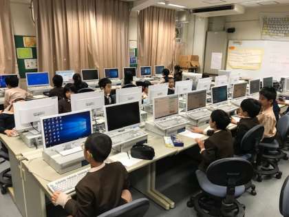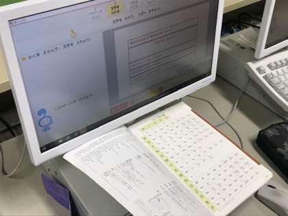 パソコンルームで、名前や相手に伝えたいことをローマ字で入力をし、名刺をつくりました。