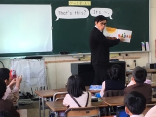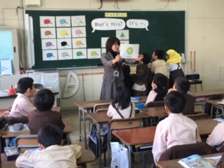 5時間目、外国語活動の研究授業を行いました。Cネットの先生も一緒に参加して教えてくださいました。