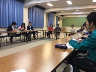 3年生の授業を受けて、討議会、研修会を行いました。授業や短時間指導での工夫などについて、教育委員会指導部、英語イノベーショングループの、T先生に教えていただきました。