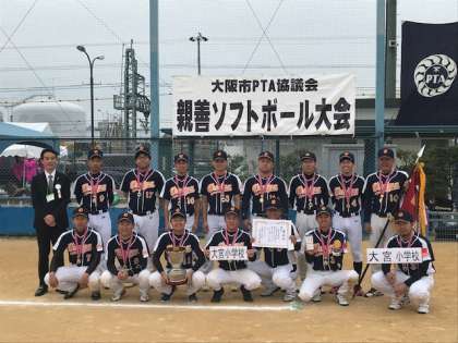 大阪市PTA協議会主催の親善ソフトボール大会で、大阪市にある約400校近くの小中学校の頂点に立ちました。大宮小学校PTAにとっては、うれしい初優勝でもありました。本当におめでとうございます。