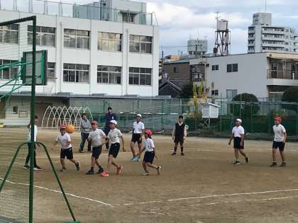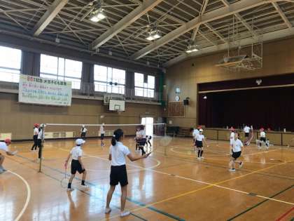 バドミントン、卓球、ドッジ・バスケクラブでは、運動場や体育館で楽しそうに体を動かしています。