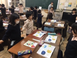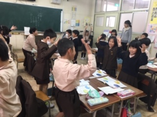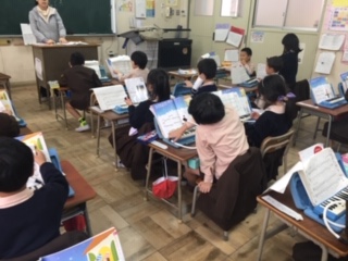 鍵盤ハーモニカの練習の後、「はる なつ あき ふゆ」の曲の歌詞をイメージして、身体表現を楽しみました。グループごとに考えていて、とても楽しそうに表現しています。