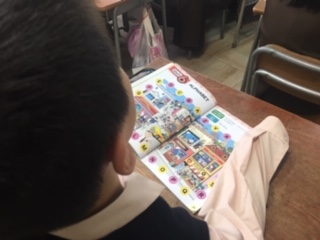 「アルファベットの歌」を歌っています。最近、掃除の時間にも英語の歌をかけるとみんな歌っています。