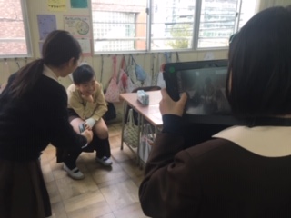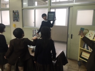 不思議なポーズで写真を撮っていました!聞くと、図工の鑑賞の学習です。有名な作品の写真を見ながら、そのポーズを再現しているのだそうです。