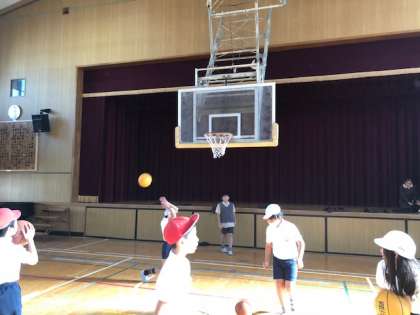 体育は、バスケットボールの基礎的な動きを確認しています。