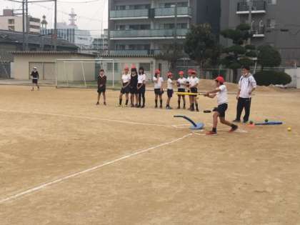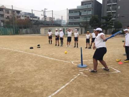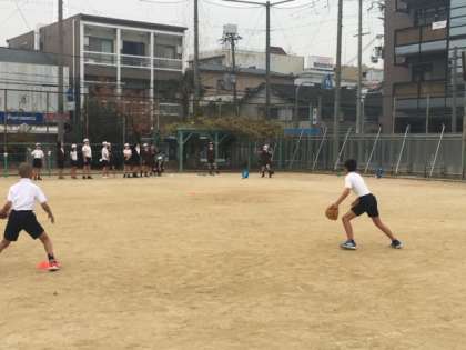 寒い中でしたが、バットでボールを打ったり、ボールをとったり、楽しく活動することができていました。