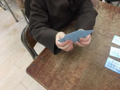 百人一首の歌を覚えている子どももいて、とるのが少しずつはやくなってきています。