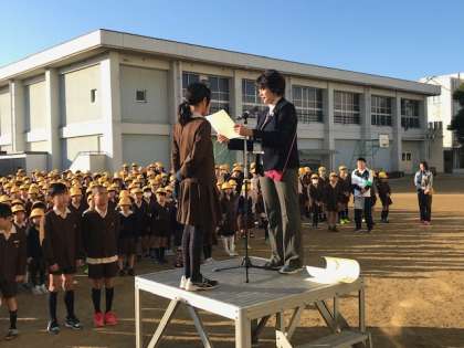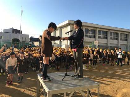 校長先生から自主学習をがんばっている人の紹介がありました。その人たちのノートを玄関に置いています。参考にしながら、みんなで自主学習に取り組んでいきましょう。それが必ず力となります。税に関する習字や給食の献立コンクール、マラソンの表彰も行いました。「やったらやっだけのことはある」みんなで、積極的にいろいろなことに挑戦しましょう。