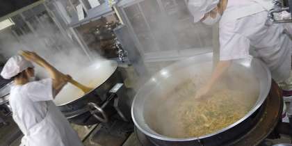 大きな釜2つでたくさんの野菜とお肉を具材に作った焼きそばは、ほんのりオイスターソースの香りがしておいしいですよ。