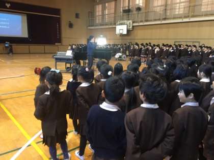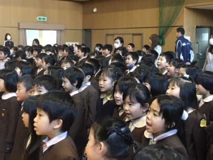 今日は、音楽集会でした。初めに「きらきらぼし」をみんなで歌いました。よく知っているので、大きな声で歌いました。だんだん音を上げていくと、きれいな声が響くようになりました!