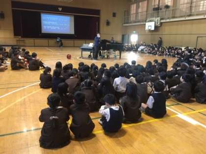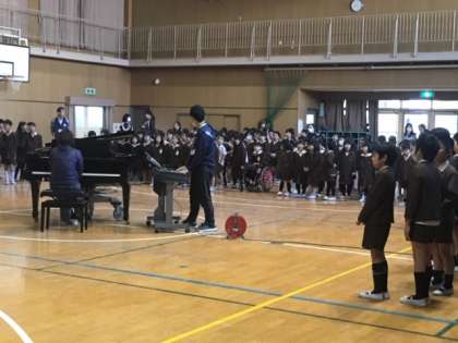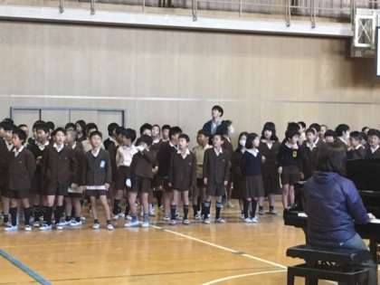 続いて、英語バージョンで歌いました。ずっと掃除の時間などでも聴いていたので、上手です。クリスマスを思い浮かべながら歌い、楽しい気分になりました。次回の音楽集会は、2月です。
